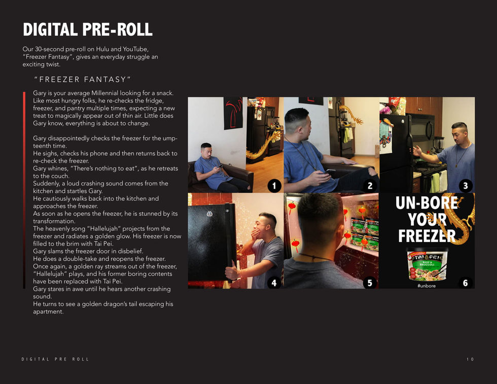 This is an ad campaign for the 2017 National Student Advertising Competition that I worked on for my American Advertising Federation (AAF) class. We were given the product Tai Pei Frozen Food and asked to come up with an entire creative advertising campaign to present amongst other universities. This campaign won 3rd place in our district of Southern California universities. My personal contributions to this plans book were brainstorming for the creative strategy, conducting focus groups, and creating the visual style, graphic and video content for the social media and out-of-home ads.